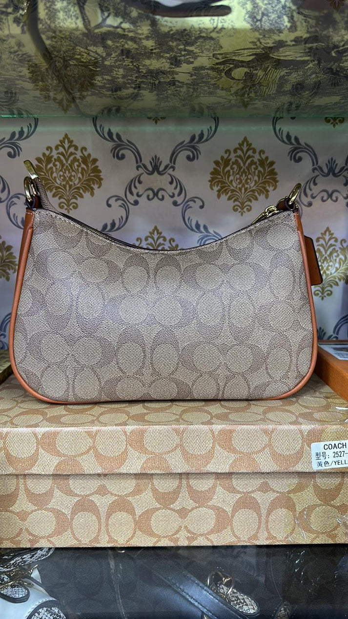 Elevate your accessory collection with the Coach Teri Shoulder Bag, a chic and versatile piece that seamlessly blends classic design with modern functionality. Crafted from the brand's iconic signature coated canvas and smooth leather, this handbag features a structured silhouette adorned with polished hardware. The zip-top closure ensures the security of your essentials, while the detachable handle and adjustable strap offer multiple carrying options wear it as a top handle bag, shoulder bag, or crossbody to suit your style and needs. Interior organization is a breeze with two credit card slots and a multifunction pocket, keeping your belongings neatly arranged. Whether you're heading to the office or out for a casual outing, the Coach Teri Shoulder Bag adds a touch of sophistication to any ensemble.