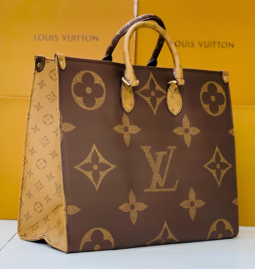 The Louis Vuitton On The Go New Brown tote combines luxury with practicality. Crafted from premium monogram canvas in a rich brown hue, it features a spacious interior, sturdy top handles, and comfortable shoulder straps for versatile carrying. Perfect for work or travel, this elegant bag enhances any look. Elevate your style with LV’s timeless sophistication.